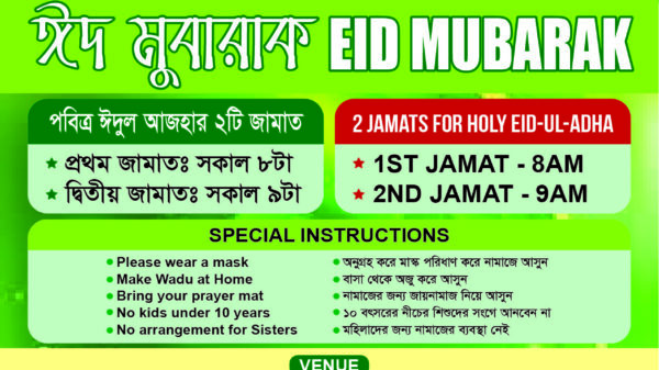 ইসলামিক সেন্টার অব আটলান্টিক সিটির উদ্যোগে আটলান্টিক সিটিতে ৩১ই জুলাই ঈদুল আজহার নামাজের আয়োজন।
